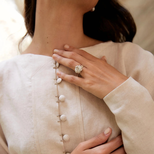 Anillo Eunicella bañado en Oro con Diamante ecológico